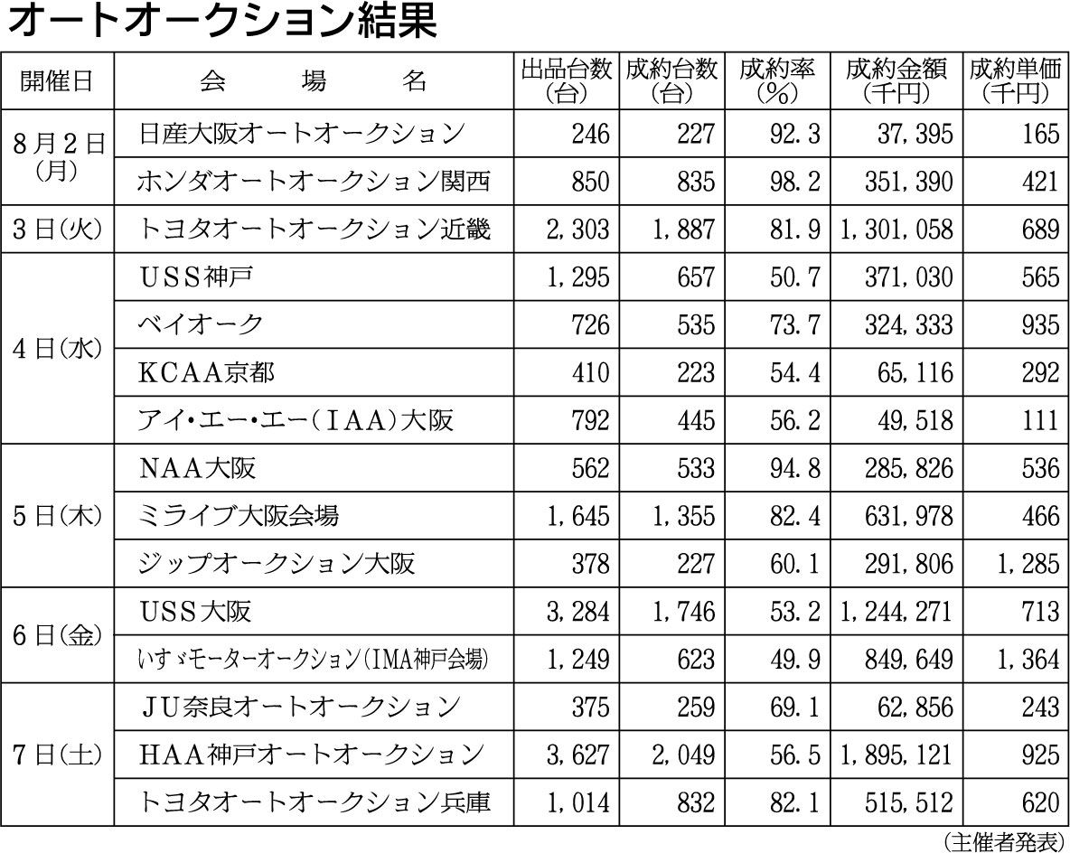 〈オートオークション結果〉近畿地区 2021/8/2~7