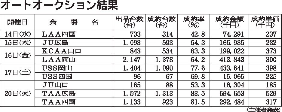 〈オートオークション結果〉中四国地区 2020/10/14~20