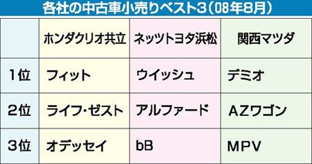 ガソリン価格の高騰に一服感が見え始めた一方で、物価上昇は依然として続き、消費者の購買意欲は冷え込んでいる国内経済。こうした市場環境を受け、2008年8月のディーラーの中古車小売り市況も各社で厳しい状況が続く。お盆休みを挟む季節要因もあるが...