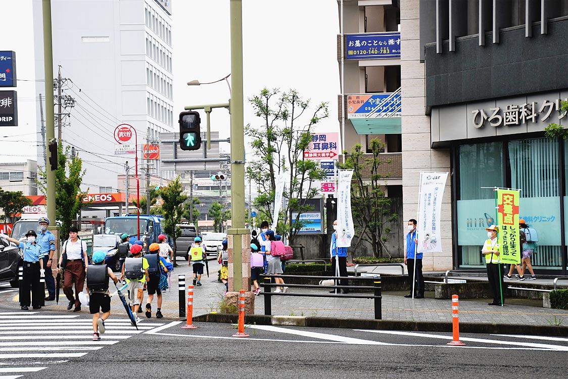 【静岡】日本自動車連盟(JAF)静岡支部(太田勝之支部長)は、静岡市駿河区の曲金7丁目の交差点で交通安全街頭啓発活動を実施した=写真。朝の通学・通勤時間帯に同支部の職員と警察官、交通安全協会の交通安全指導員の計16人が街頭に立ち、横断歩道...
