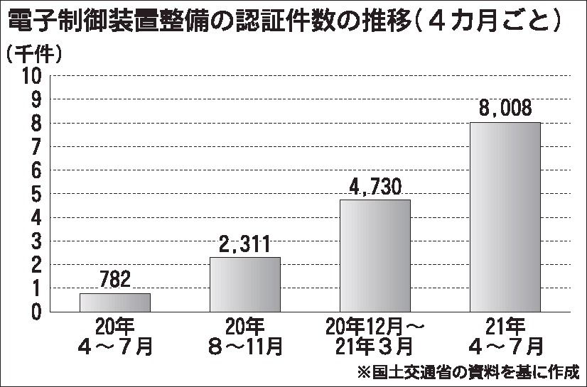 整備業界が先進運転支援システム(ADAS)や自動運転など車の電子化への対応を加速させている。2020年4月に施行した特定整備制度の電子制御装置整備の認証件数は整備関連事業者の1割強に達した。業界団体首脳らは「認証取得は大前提で、ビジネスと...