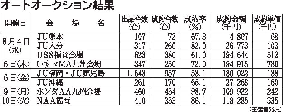〈オートオークション結果〉九州地区 2021/8/4~10