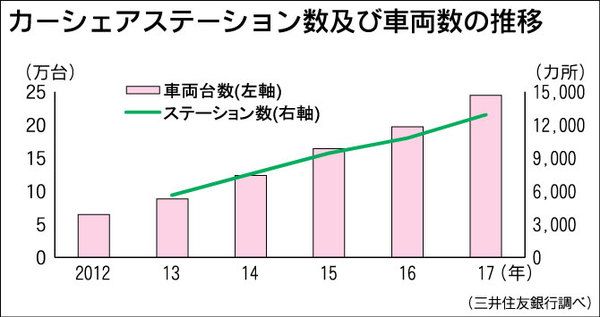 レンタカーとカーシェアリングサービスの境界が薄れつつある。両者に法律上の明確な区分はなく、これまでは車種数や貸し出し時間などでそれぞれの特徴を保ってきた。しかし、近年はサービス内容や顧客が重なりつつあり「将来的に(カーシェアと)レンタカー...