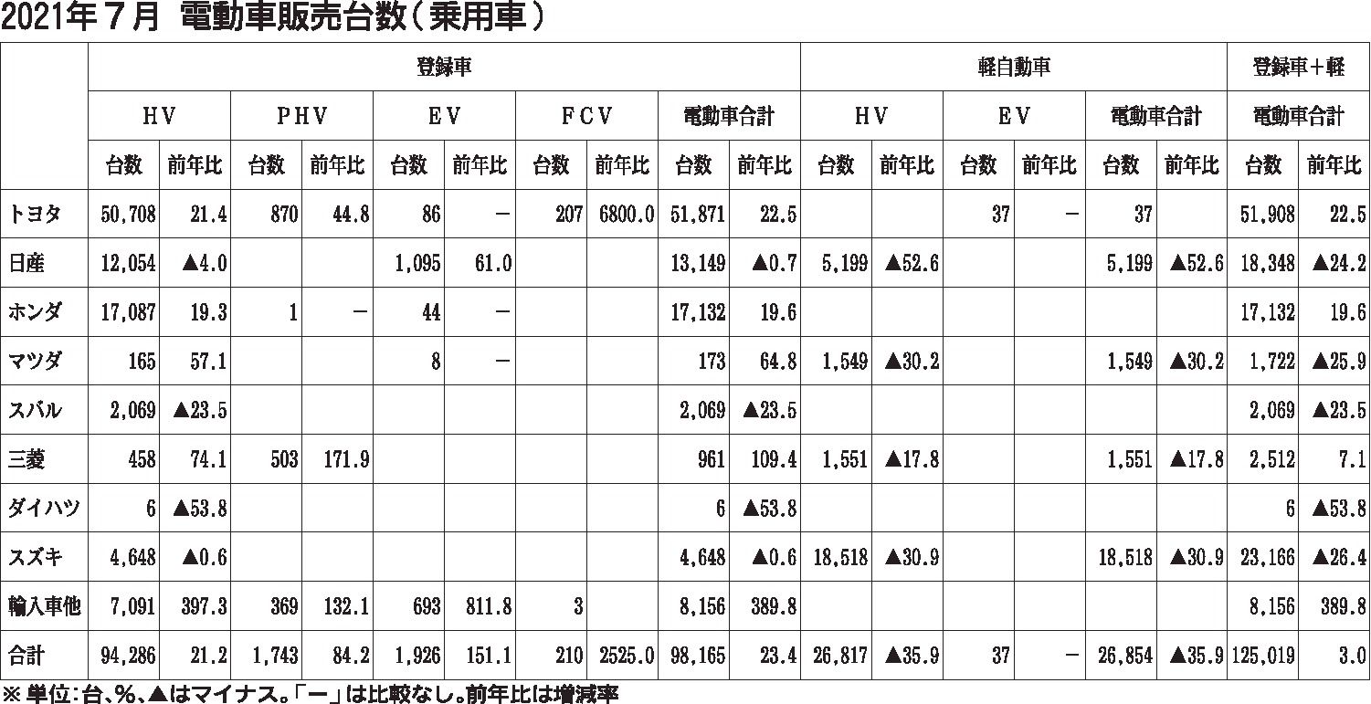 電動車比率が着実に拡大、2021年1~6月の乗用車は38%