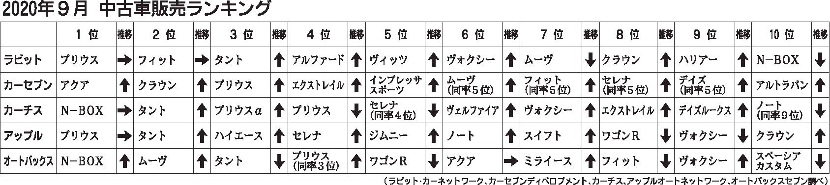 〈2020年9月 中古車販売ランキング〉