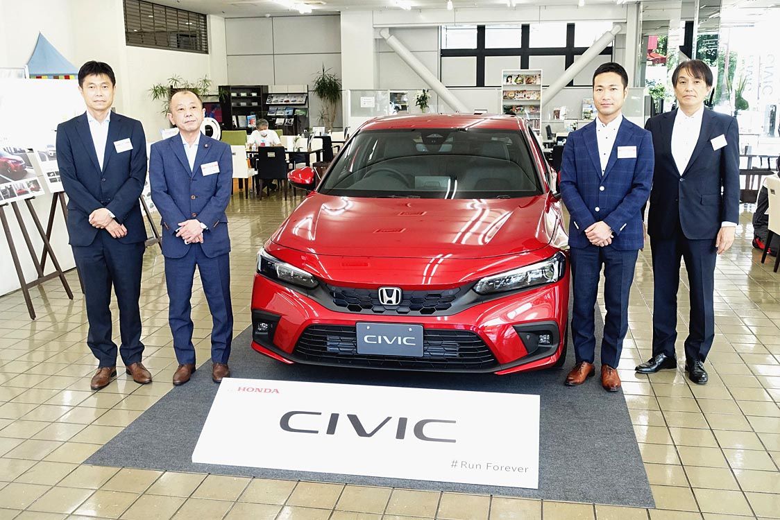 【福岡】福岡・佐賀県ホンダ会(岩丸博紀会長)は6日、福岡市内で新型「シビック」の発表会を開催し、地元メディアに披露した=写真。同会の役員らが出席して、新型車をPRした。5日までの事前受注台数は両県で31台。今後、9月3日の発売に向け、受注...