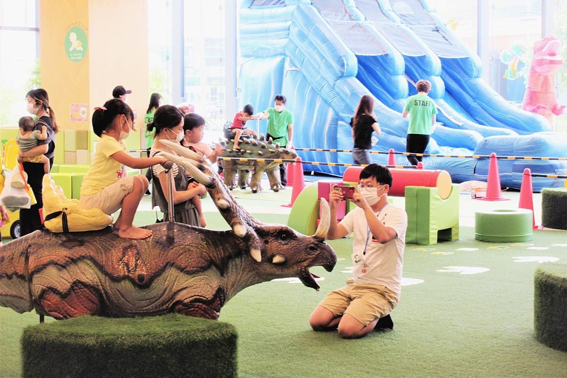 【名古屋】愛知トヨタ(赤尾嘉彦社長)が運営する「オートタウン・ラボ」が開設1周年を迎え、記念イベントが行われた=写真。2週にわたって行った「ジュラシック・キッズパーク」には親子連れ計360組が訪れ、会場内の様々な恐竜とふれあっていた。 イ...