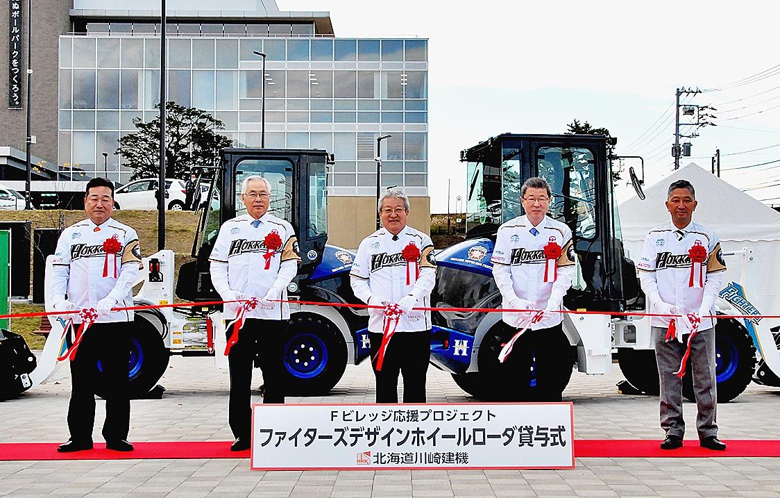 〇…日北自動車工業(丹野司社長)の関連企業・北海道川崎建機(同社長)は22日、北広島市に建設中の北海道日本ハムファイターズ中核施設「北海道ボールパークFビレッジ」の応援プロジェクトとして、北広島市と建設施主にファイターズデザインのホイール...