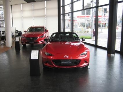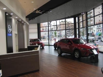 ◆商品価値、ブランド訴求 ブラックを基調にした西日本初のマツダの次世代型店舗の神戸マツダ灘店。2014年8月の店舗リニューアルと同時に生まれ変わった。ショールームでは特徴的な「ソウルレッド」のマツダ車をブラックの床の上に一方向に展示し、薄暗...