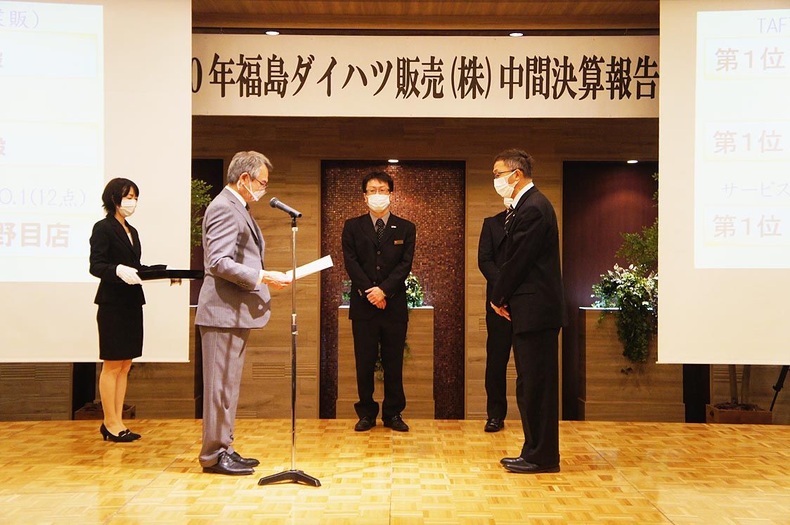 【福島】福島ダイハツ(川村幸司社長)は、福島市で全社員を対象に「2020年中間決算報告会」を開催した。20年度上期(4~9月)の実績や今後の事業方針などを説明した。コロナ禍を考慮し、午前と午後の2回に分けて開催。ソーシャルディスタンスの確...
