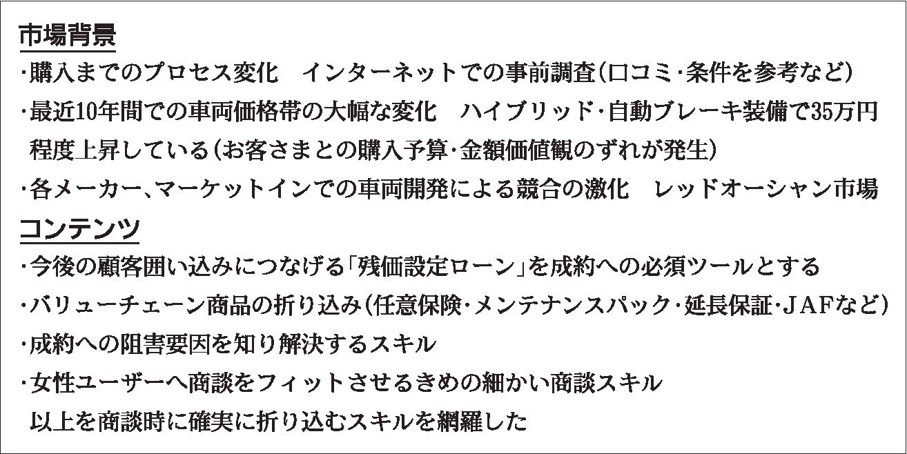 新規来店客を100%決めることができますか? 答えはイエスです。販売現場で、この質問を営業スタッフにすると「できるわけがない!」と即座に答えが返ってきます。「そうかなぁ、一緒に商談をしてみよう」と同席商談をすると決まります。そこで彼らは「...