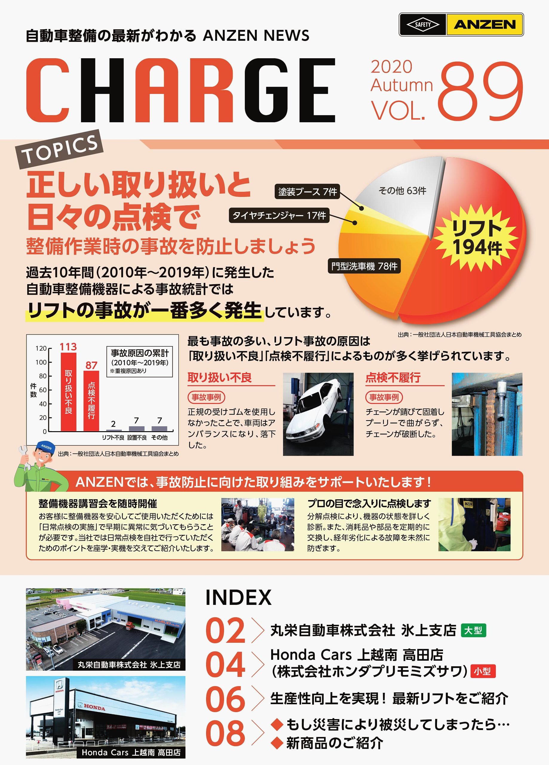機械工具商社大手の安全自動車(中谷宗平社長、東京都港区)は、季刊誌「チャージ オータムvol.89」を発行した=写真。整備作業時における事故防止に向けた自社の取り組みを紹介したほか、最新機器を導入した顧客のサービス工場として丸栄自動車、ホ...