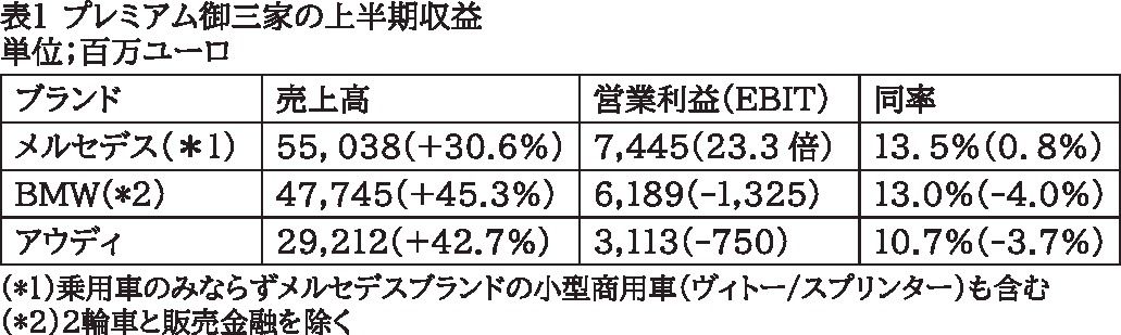 各社これまでにない上半期決算発表をしている。「コロナ・パンデミックにも関わらず好決算(表1参照)、ただし下半期は半導体供給停滞による生産減が予測され上期の好決算を帳消しにする可能性多分にあり」と各社。でも決算書には「過去最高の上半期」とか...