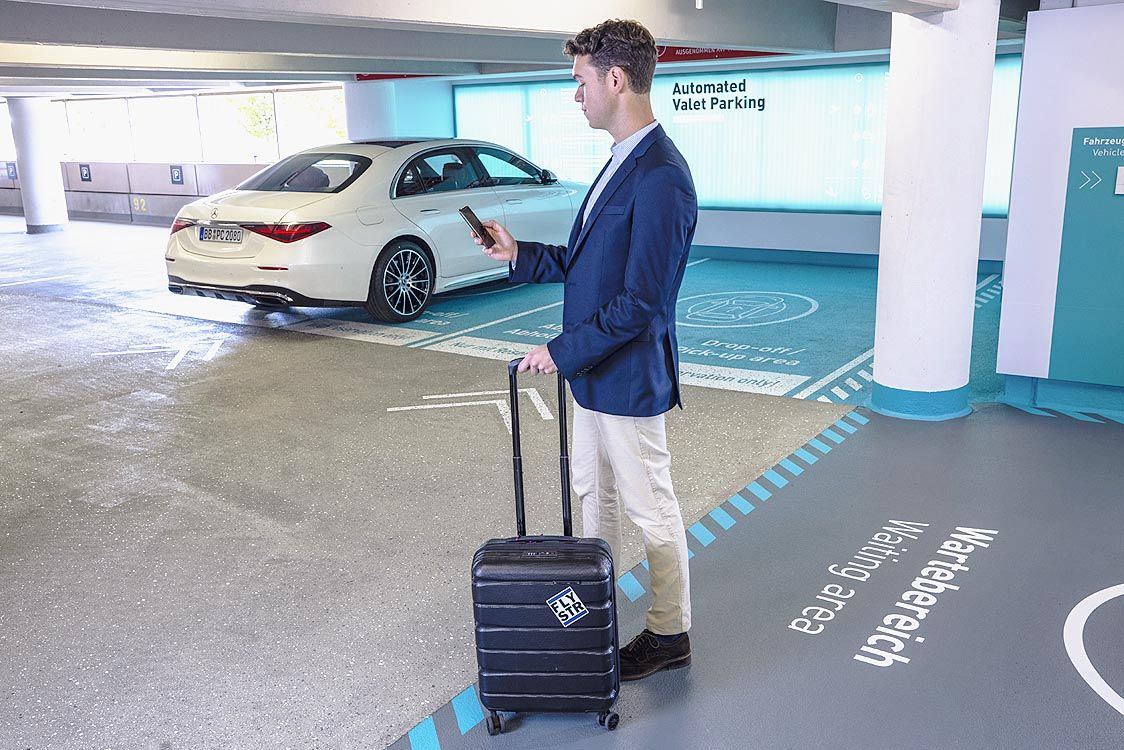 会場の駐車場では、ボッシュとメルセデス・ベンツが共同で開発した自動バレーパーキングシステムを実演する。スマートフォンで車両を自動操作して指定の駐車スペースに停める機能で、駐車場内に設置したセンサーが車両の進行経路と周囲をモニタリングし、その情報に基づいて車両側が運転操作に変換する。