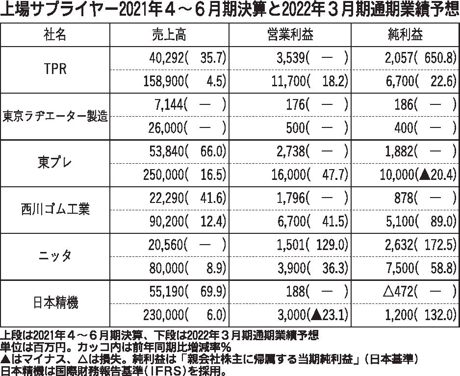 〈上場サプライヤー2021年4~6月期決算と2022年3月期通期業績予想〉