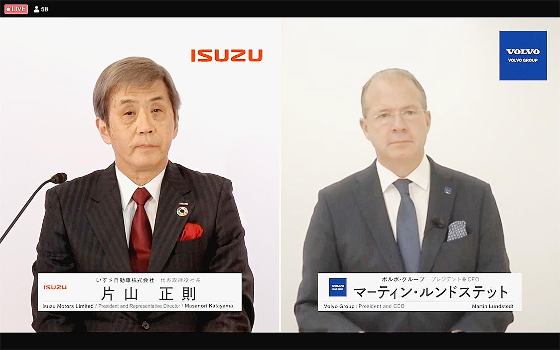 30日のオンライン会見で、片山社長は「日本の商用車メーカーとして、世界の商用車メーカーの先進技術に後れを取らないということが大きな目標だ」と話し、ボルボ・グループのマーティン・ルンドステットプレジデント兼CEOは「いすゞはボルボ・グループにとってこの上ないパーフェクトマッチ。新しい協業の機会を追求し業界の変革をリードする」と語った。