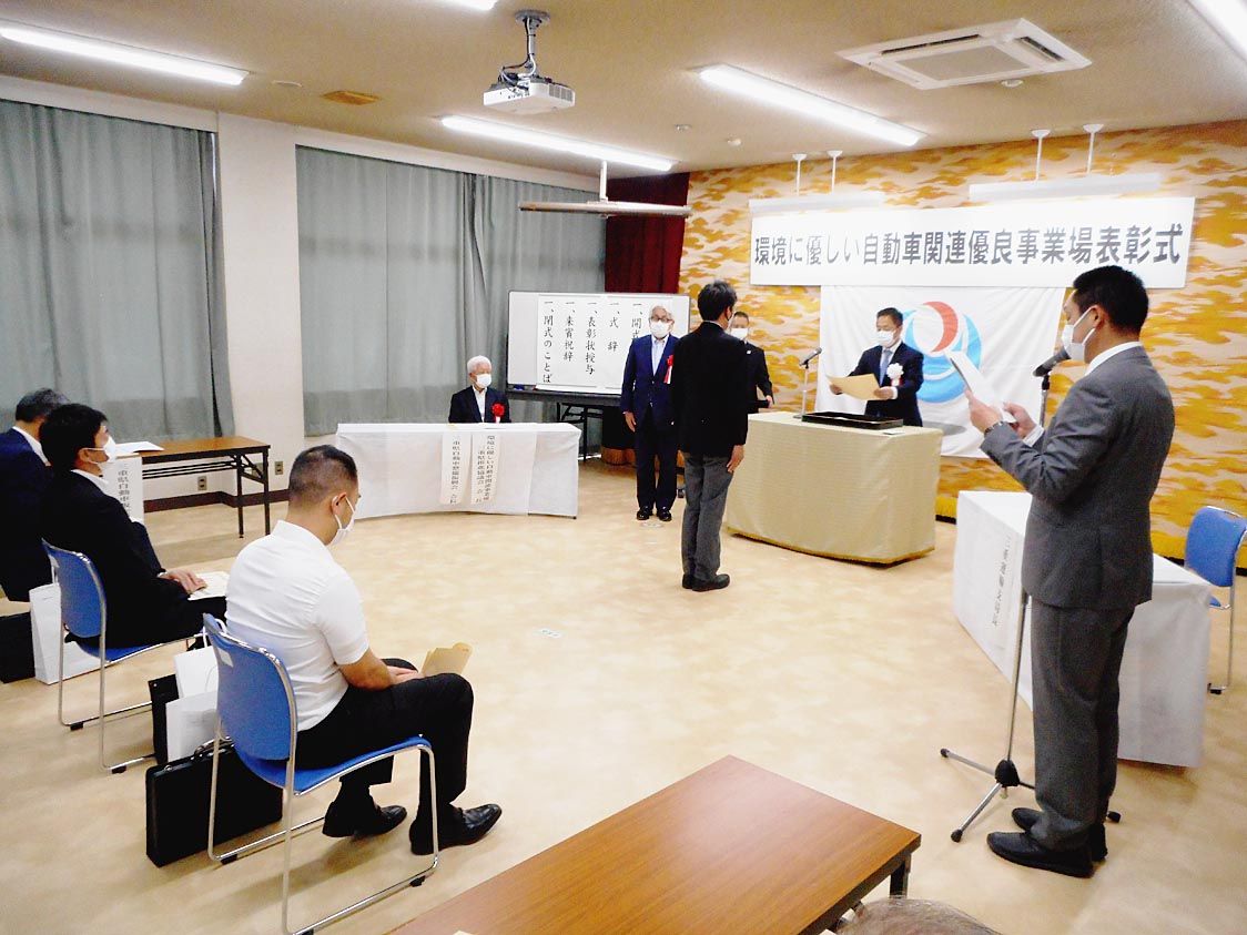 【津】三重運輸支局(白木広治支局長)は、津市の三重県自動車整備振興会で「令和3年度環境に優しい自動車関連優良事業場表彰式」を行った=写真。表彰を受けたのは、環境に優しい自動車関連事業場三重県推進協議会(竹林武一会長)を構成する7団体から、...