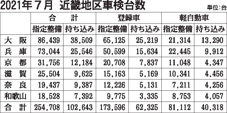 近畿2府4県の2021年7月の継続検査(車検)台数(軽自動車を含む)は、前年同月比1・6%減の35万7351台で、11カ月ぶりに前年を割り込んだ。このうち登録車は同2・0%減の23万5921台で11カ月ぶり、軽は同0・8%減の12万143...