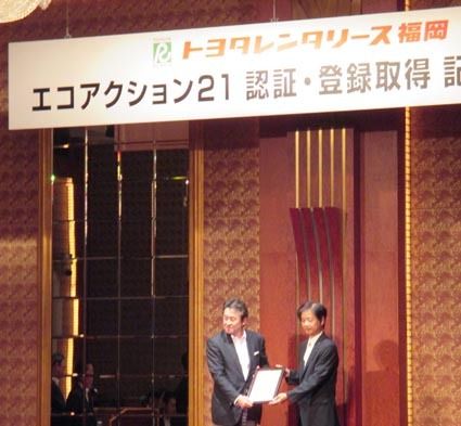 トヨタレンタリース福岡(金子直幹社長)はこのほど、環境省が推進する「エコアクション21」の認証・登録を取得した。環境に優しい店舗づくりを進め、企業の社会的責任を果たすのが狙い。今回、本社を含めて同社の39事業所すべてが対象となった。 福岡...