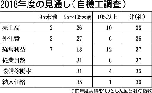 日本自動車機械器具工業会(自機工、辻修理事長)は2017年度の「企業動向調査結果概要」をまとめた。17年度の売上高は前年比で「横ばい」だった企業が4社増の22社と全体の57・9%を占め、「増加した」(13社)、「減少した」(3社)を大きく...