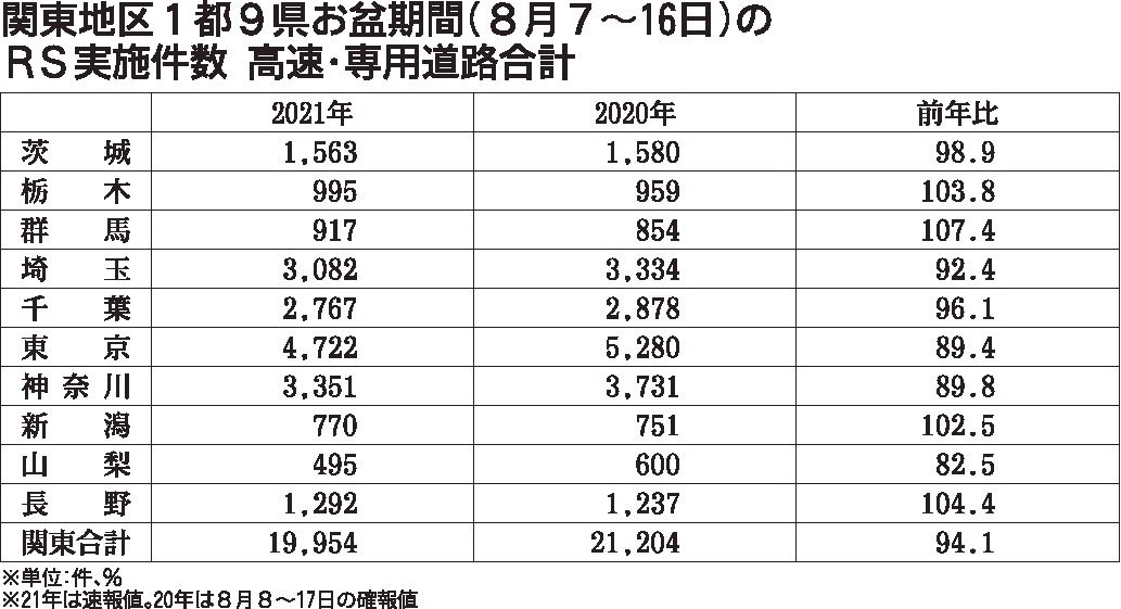 2021年お盆期間(8月7~16日)中、日本自動車連盟(JAF)関東本部(関島誠一本部長)管内の1都9県の各支部が実施したロードサービス(RS)件数は、速報値で前年同期比5.9%減の1万9954件で前年より1250件減少した。同期間に救援...