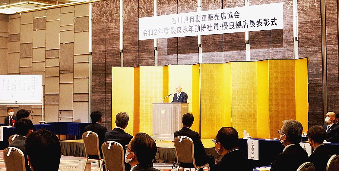 【金沢】石川県自動車販売店協会(要明英二会長)は、金沢市内のホテルで「令和2年度優良永年勤続社員・優良拠店長表彰式」を開催した=写真。長年にわたって会員ディーラーに勤務している永年勤続社員38人と優秀な実績を上げた拠店長26人を表彰した。...