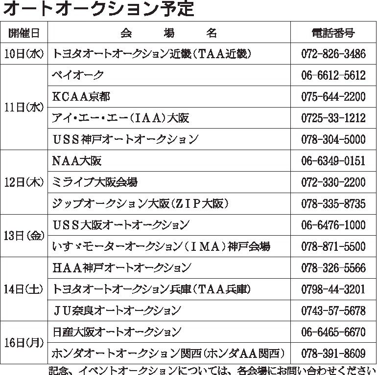 〈オートオークション予定〉近畿地区 2020/11/10~16