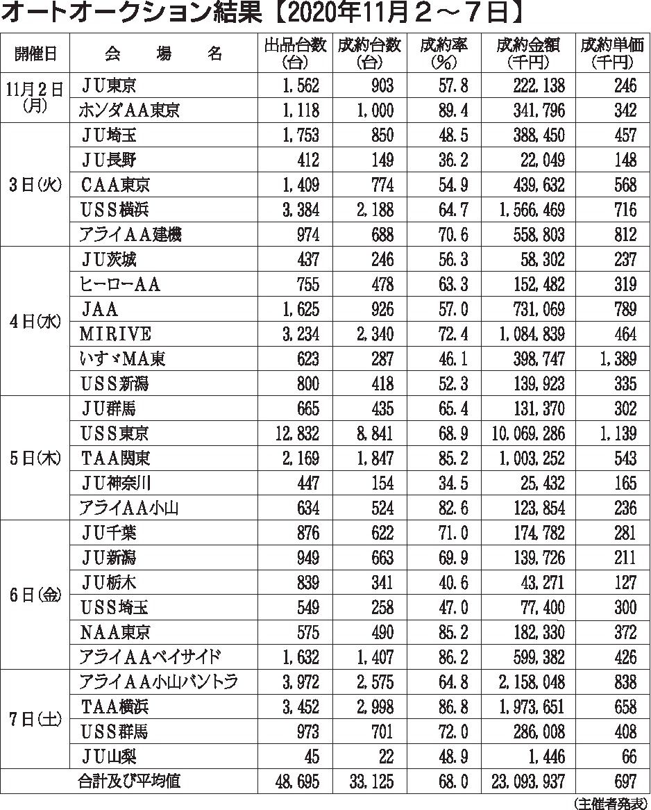 〈オートオークション結果〉首都圏 2020/11/2~7