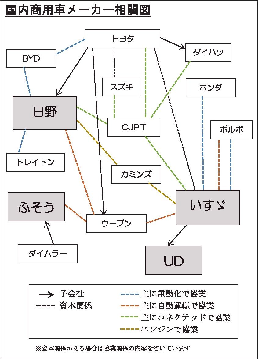 商用車メーカーがCASE(コネクテッド、自動運転、シェアリング、電動化)対応に向けてグループの枠を超えた協業を活発化している。カーボンニュートラル実現に向けた電動化技術や物流の効率化を実現するコネクテッド技術、ドライバー不足を解決する自動...