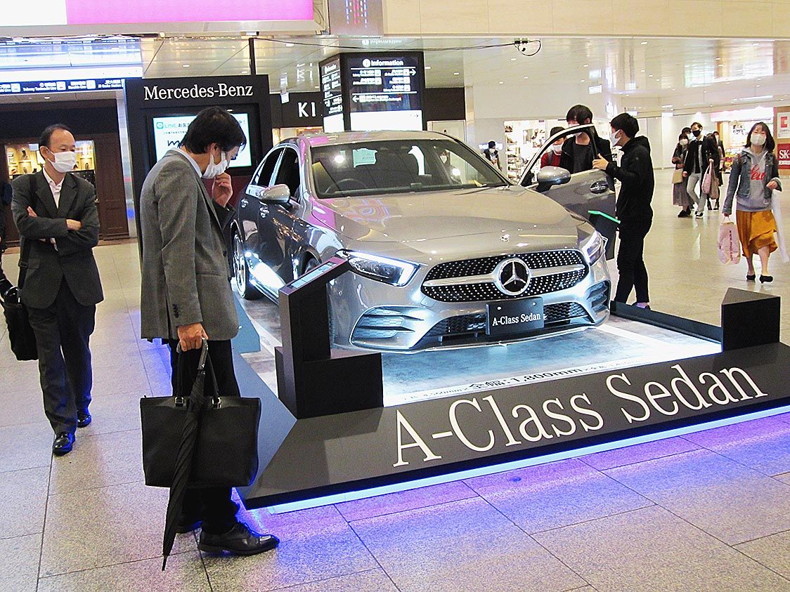 【大阪】メルセデス・ベンツ日本(MBJ、上野金太郎社長、東京都品川区)は、阪急・大阪梅田駅のビッグマン前広場(大阪市北区)で「Aクラスセダン」の展示会を開催した=写真。改札に近い好立地とあり、乗降客や通行人らが足を止めて興味深く眺める光景...