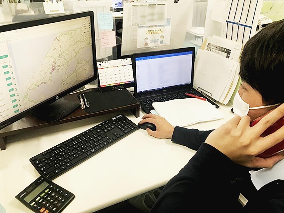 ヤマエ久野は、これまで震災時には車両の位置を電話で確認・把握して迂回ルートを指示していた。また、スーパーやコンビニエンスストアへの配送には時間の制約があり、交通状況によっては運行管理者がルートを選びドライバーを目的地まで誘導する必要が生じるため、動態管理の効率化を狙いムーボ・フリートの導入に踏み切った。