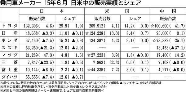 日本の乗用車メーカーの日本、米国、中国市場における6月の販売状況では、日本市場でプラスとなったトヨタ自動車とマツダの2社が米国、中国でもプラスとなった。 米国では、日産が「ローグ」が6月新記録となるとともに米国で過去最高の販売。マツダも「...