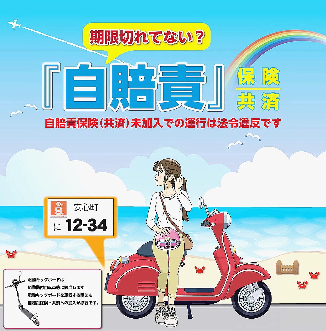 自賠責の広報・啓発活動は国交省や警察庁など7府省のほか、自工会をはじめとする20団体で構成する「自賠責広報協議会」が主催。とくに車検の対象外となる軽二輪車などでは更新忘れが目立つため、ステッカー張り替えの注意喚起も行っていく。電動キックボードの加入が不可欠なことも周知する。