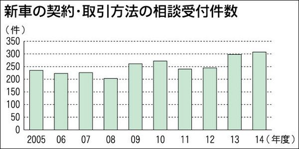 自動車公正取引協議会(自動車公取協、池史彦会長)は、2014年度に消費者から寄せられた新車、中古車購入などに関する相談受付状況をまとめた。それによると、新車(四輪車)の「契約・取引方法」についての相談は過去最高となった。自動ブレーキなど装...