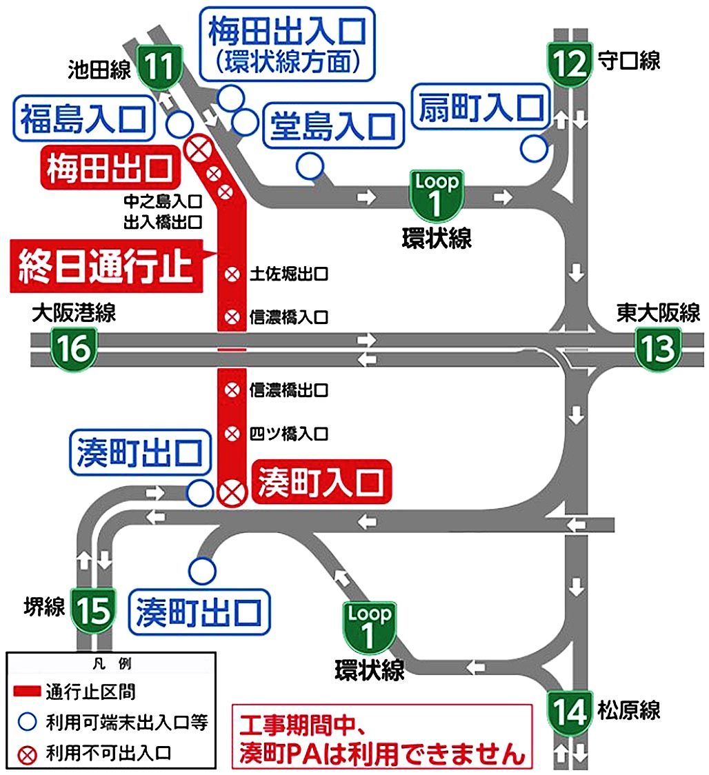 【大阪】阪神高速道道路(吉田光市社長、大阪市北区)は今秋実施する「1号環状線リニューアル工事2021北行」の概要を公表した。 11月16日午前4時から26日午前6時まで湊町入口~梅田出口区間を終日通行止めとする。期間中、湊町・四ツ橋・信濃...