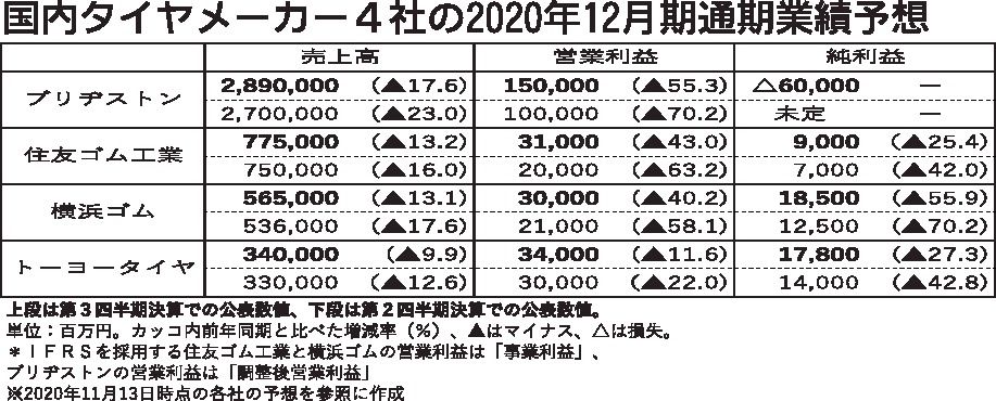 国内タイヤ4社が、2020年12月期業績予想を揃って上方修正した。第2四半期(4~6月)から好調な中国と、7月以降、需要が段階的に戻りつつある北米の2大市場が上振れの要因になった。 横浜ゴムは中国での新車用タイヤの販売が前年同期に対し、7...