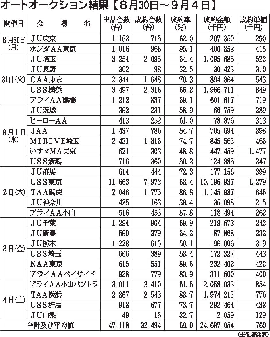 〈オートオークション結果〉首都圏 2021/8/30~9/4