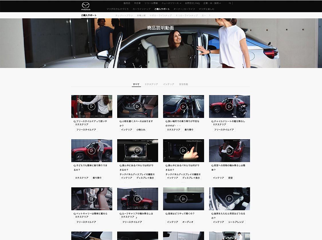 マツダは公式ウェブサイト内にある商品紹介ページを刷新する。同社が伝えたい情報と購入検討者が求める情報を精査し、内外装や安全装備の機能などを説明した動画コンテンツを新たに追加する。重視するのは「わかりやすさ」。初めて新車を購入する人でも理解...