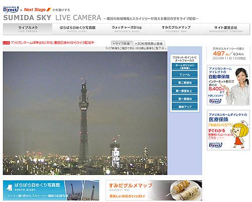 アメリカンホーム保険が5月から協賛する、「東京スカイツリー」のライブ映像が見ることができるサイト「墨田の空ライブカメラ」が50万アクセスを突破した。同社はインターネットを活用し、注目の集まる同地域の活性化につなげる考えだ。 東京都墨田区に...
