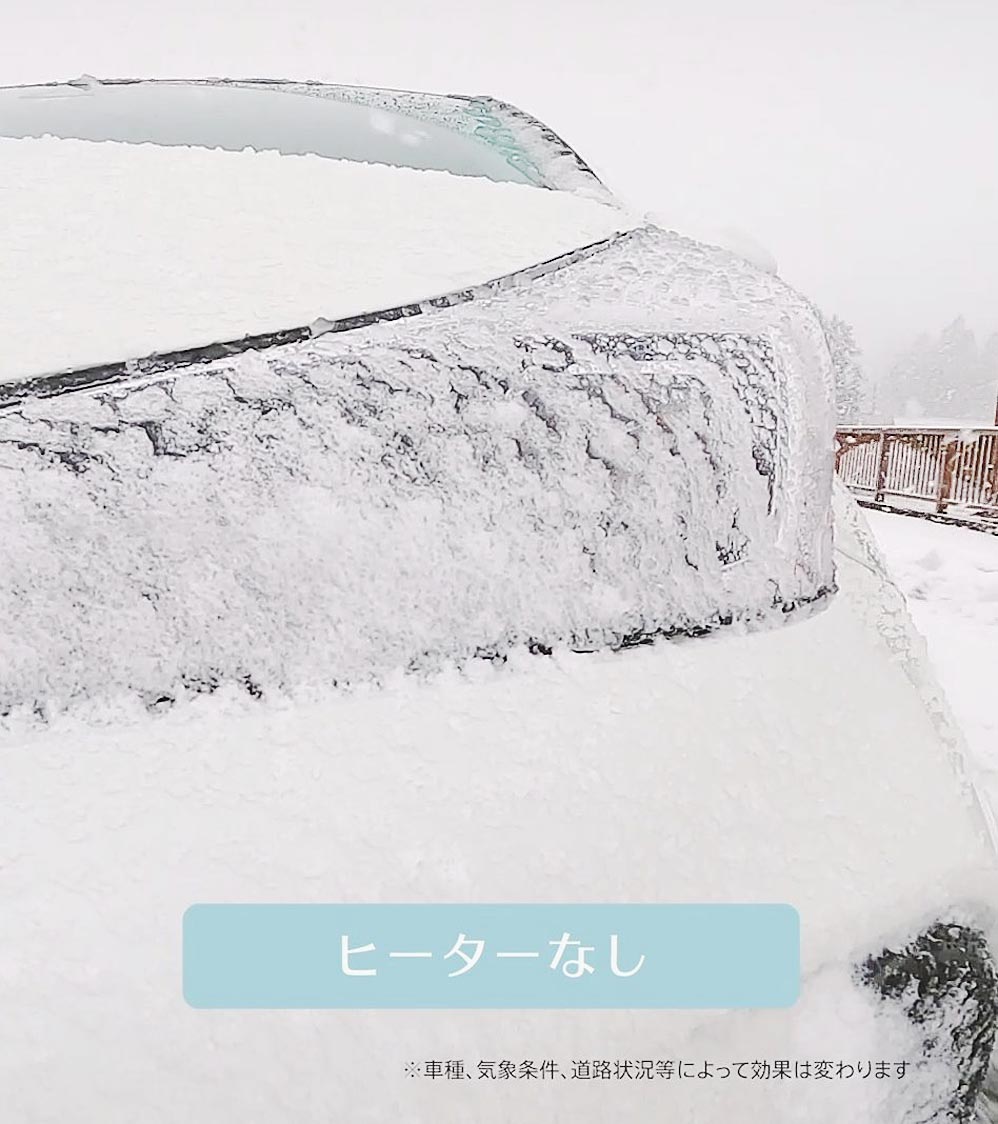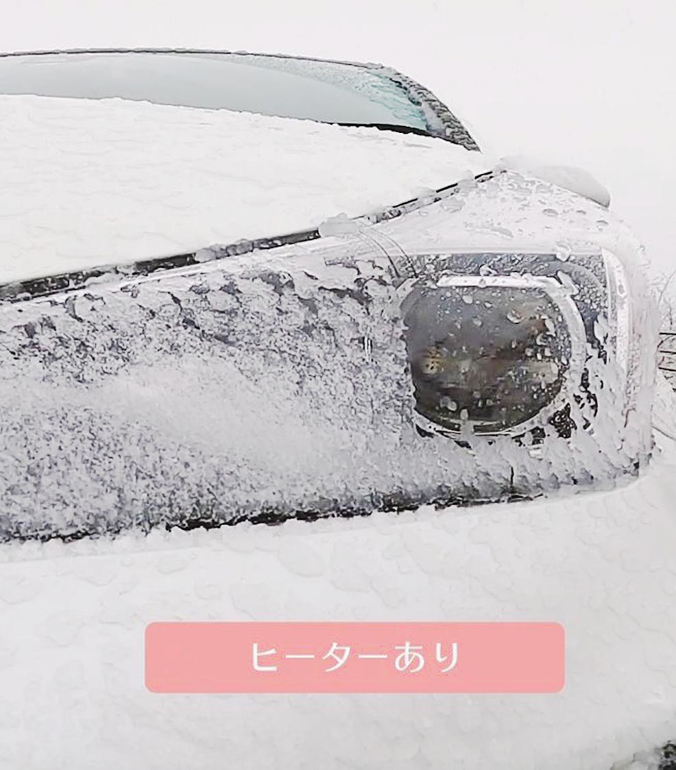 近年、採用が進むLEDヘッドランプは省電力で明るい半面、赤外光の放出が少ないため、降雪時の走行中にランプ表面に付着した雪が溶けにくく、暗くなる課題があった。新製品は、ランプ表面に貼り付けたフィルムヒーターが雪を溶かす仕組みで、外気温5度以下で自動的に作動するようにした。車検に適合し、洗車機にも耐えるが、フィルムヒーターは1年ごとの交換を推奨する。