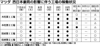 【マツダ 西日本豪雨の江協に伴う工場の稼動状況】