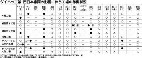 【ダイハツ工業 西日本豪雨の影響に伴う工場の稼働状況】