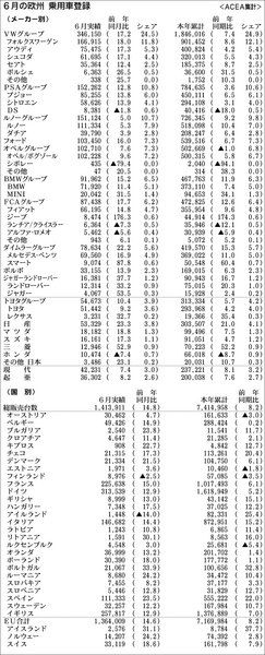 【6月の欧州 乗用車登録】