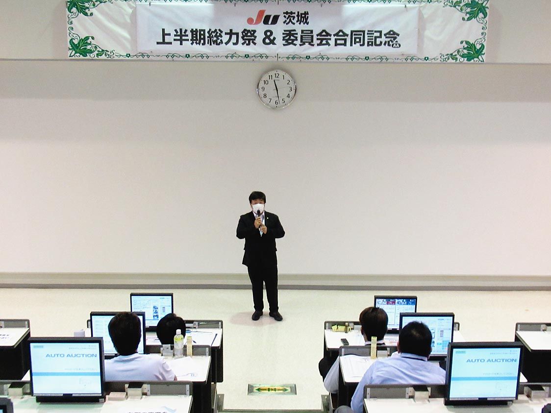 【水戸】JU茨城(長嶋和彦理事長)は、「上半期総力祭&委員会合同記念オークション(AA)」を開催した=写真。この日のAAでは、出品台数が721台、成約率が61・9%と盛況だった。 セリ前のセレモニーでは長嶋理事長が「緊急事態宣言の中での開...