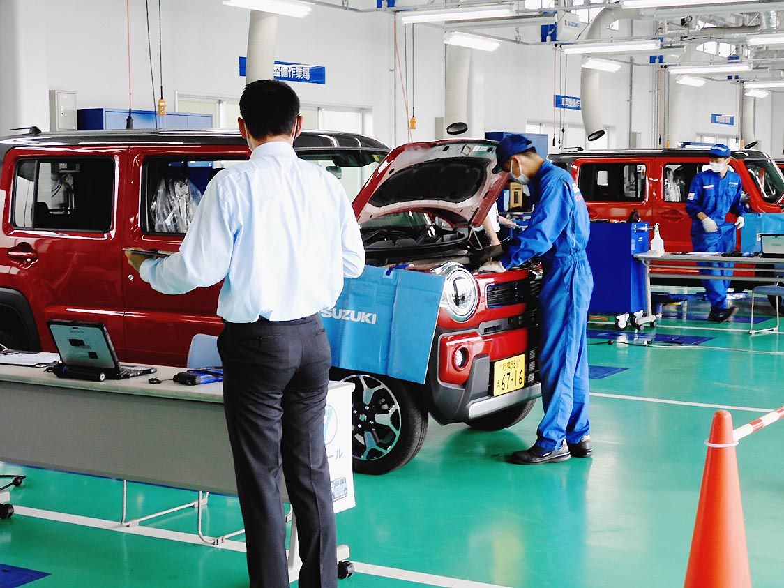 スズキ自販湘南(三溝哲哉社長)は、エンジニアを対象とする「社内技能コンテスト」を初めて開催した=写真。定期点検を題材に、基礎知識や時間内での正確な点検整備技術の習得を目指すとともに、スキルアップに向けた基礎固めに役立てていく。当日は入社2...