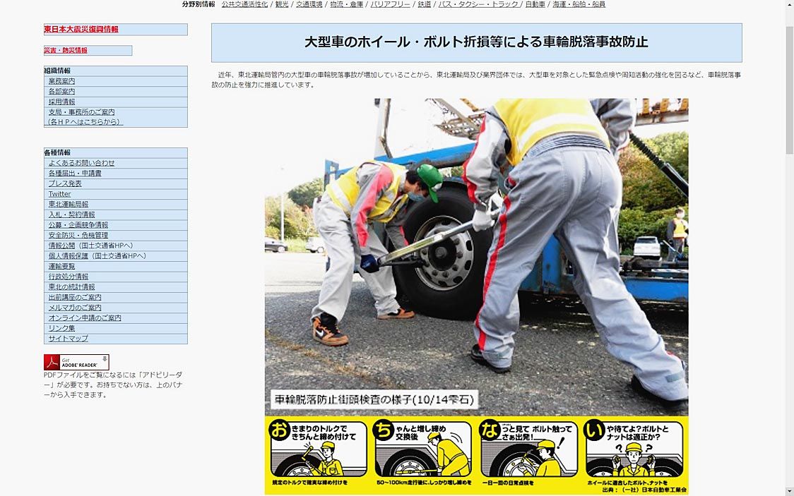 【仙台】東北運輸局(亀山秀一局長)は、11月1日から2021年2月28日まで「大型車の車輪脱落事故防止キャンペーン」を実施している。東北6県の19年度の車輪脱落事故発生件数が、全国ワーストを記録し、深刻な状況と判断する。特に、冬タイヤの交...