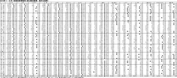 【2015年6月 地域別新車販売(含む軽自動車、海外生産車)】