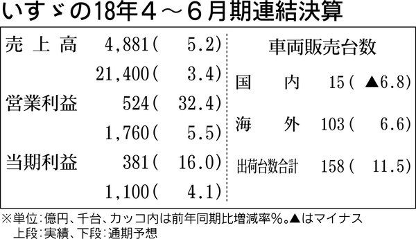 いすゞ、4~6月期連結業績 2期連続で増収増益確保