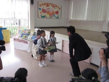 青森ダイハツモータース、新入社員が幼稚園で研修 絵本50冊ずつを寄贈