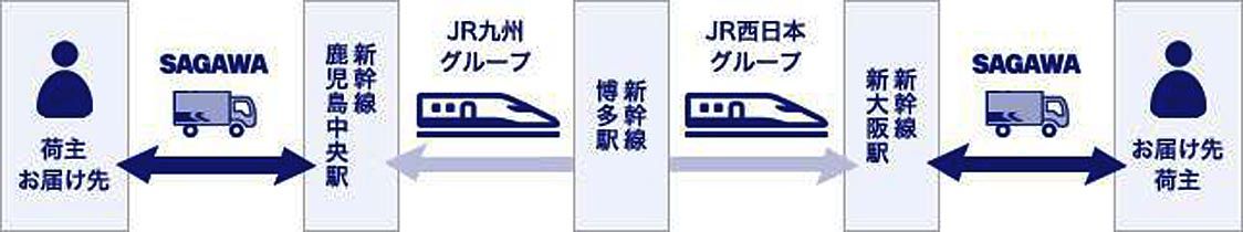 博多駅~鹿児島中央駅間の貨客混載輸送は、JR九州と佐川急便がすでに事業化しており、今回の実験では鉄道輸送区間をJR西日本が管轄する博多駅~新大阪駅に伸ばす。今後、JR西日本と佐川急便は新大阪駅・博多駅間での事業化も検討予定とする。